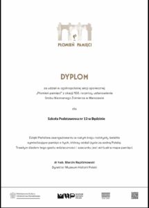 Z dumą informujemy, że nasza szkoła otrzymała dyplom za udział w ogólnopolskiej akcji „Płomień Pamięci”. Udział w tej inicjatywie był...