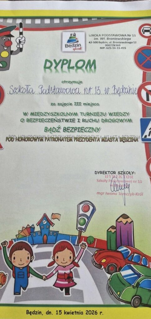 15 kwietna w Szkole Podstawowej nr 11 odbył się Międzyszkolny Turniej Wiedzy o Bezpieczeństwie i Ruchu Drogowym „Bądź bezpieczny”