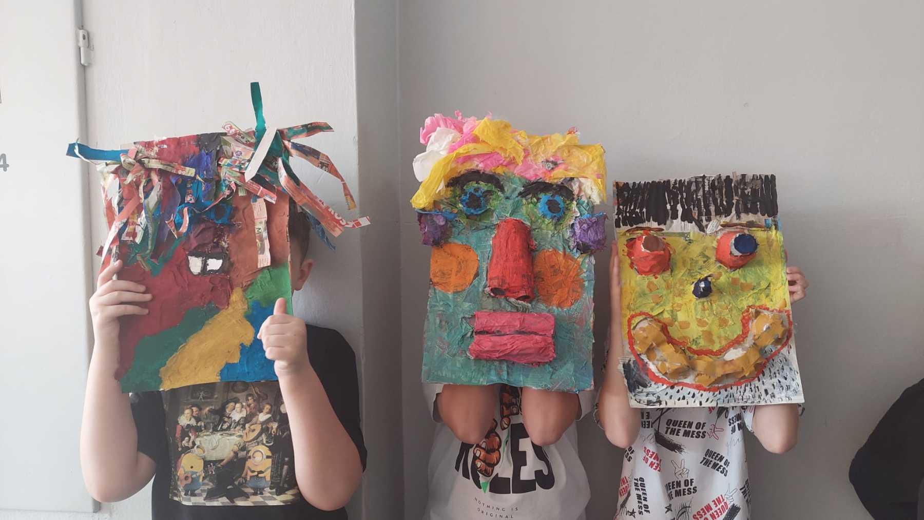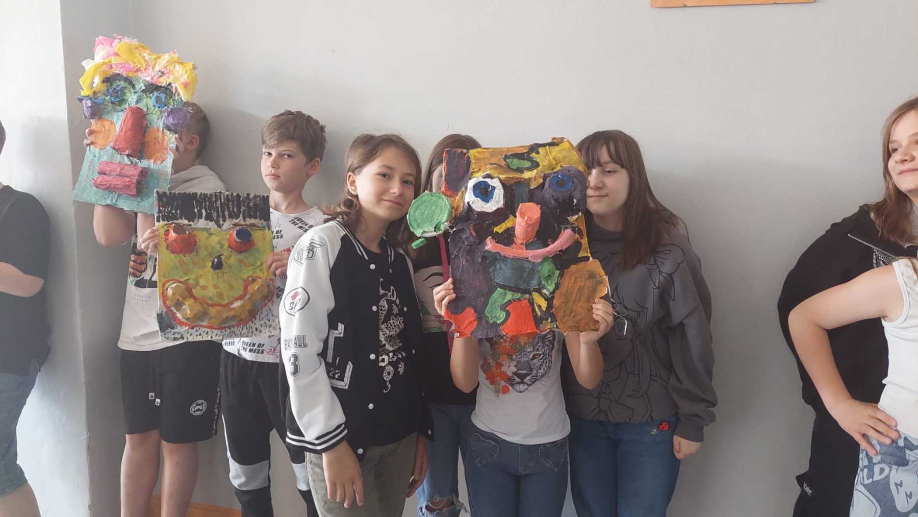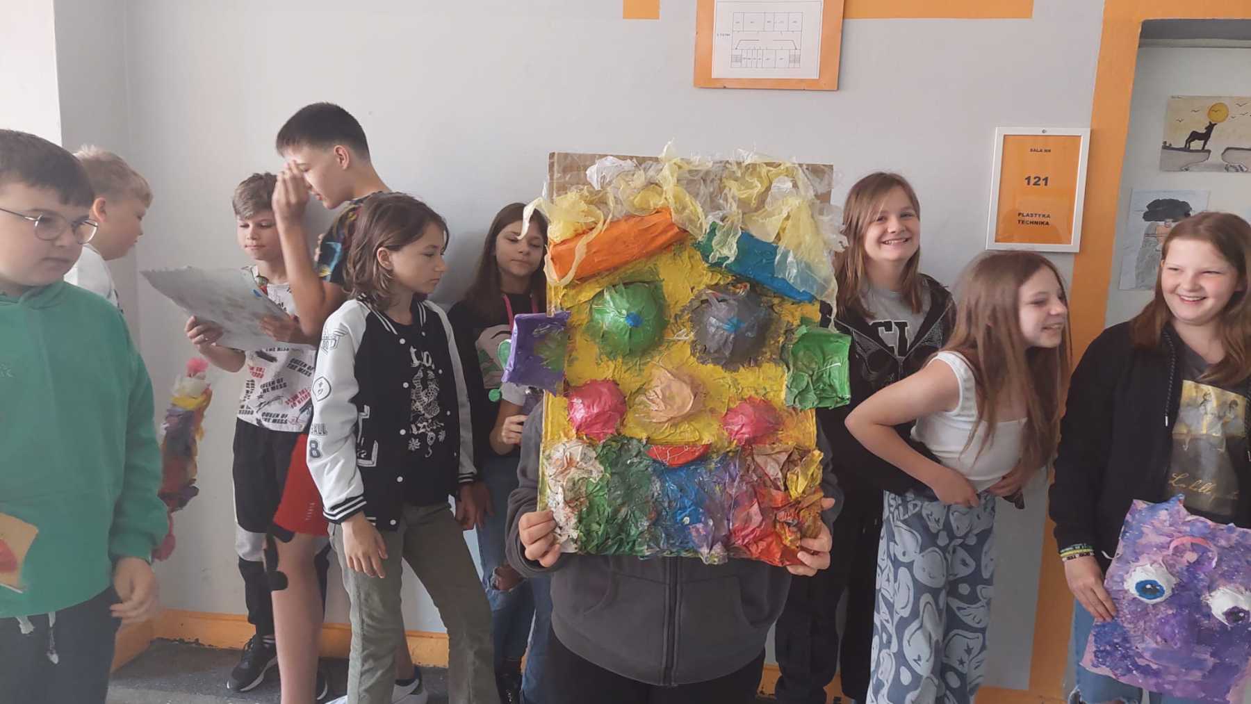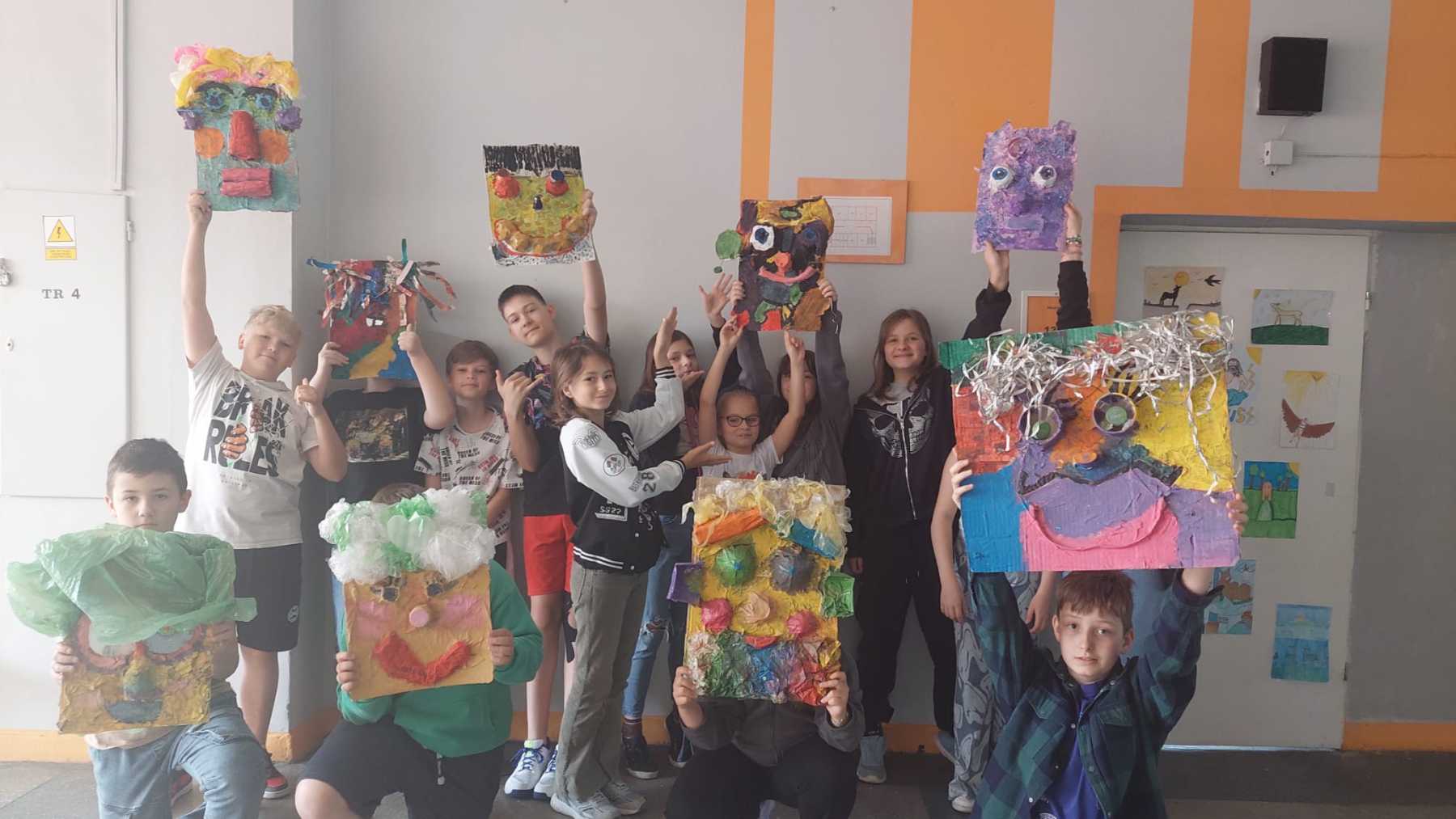 Moduł I, zadanie nr 25 – „W krainie muz”. Uczniowie tworzyli z odpadów plastikowych „eko maski”.