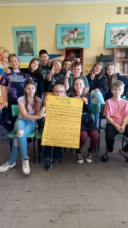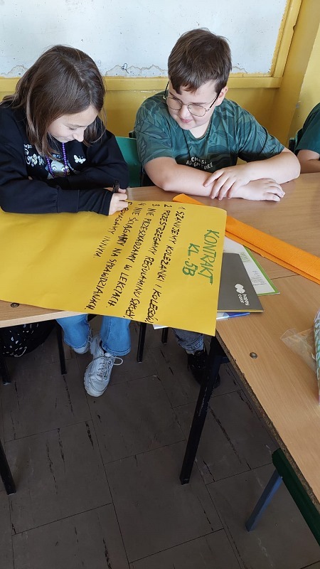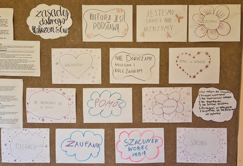„Kodeks dobrego zachowania”- klasy 5b i 7c ustaliły zasady panujące w klasie w formie obrazkowej i pisemnej
