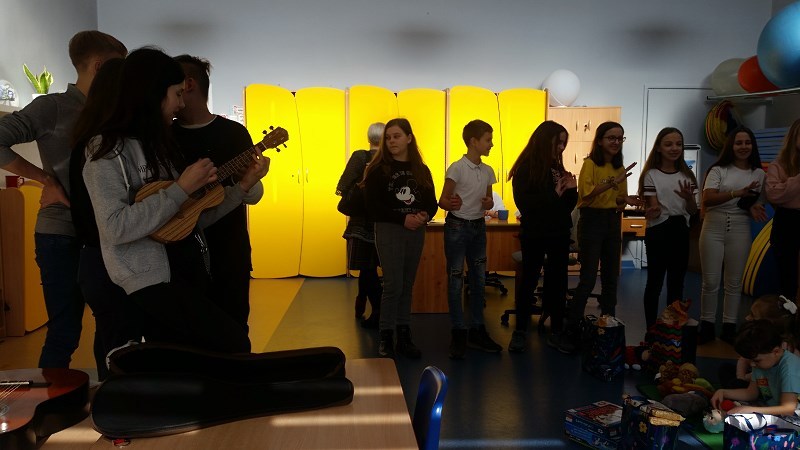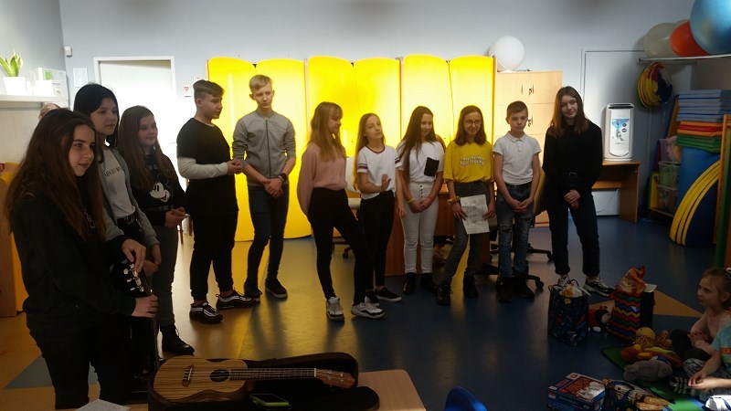 Jedenastoosobowa grupa ochotników z klasy VIc i VIIb, przy współpracy z Panią Owczarzak-Barańską i Agatą Opiatowską, przygotowała część artystyczną „Niesiemy radość i pomoc młodszym”. W dniu 27.02.2020 udała się pod opieką Pani Bogumiły Dudyńskiej i Katarzyny Trzcionki z wizytą do Przedszkolaków. Wolontariuszki i wolontariusze naszej szkoły w ramach różnych akcji pamiętają także o potrzebujących starszych osobach. Tym razem dowody sympatii i prawdziwej przyjaźni okazali młodszym koleżankom i kolegom. Radosny uśmiech, uścisk dłoni – to niezapomniane chwile.