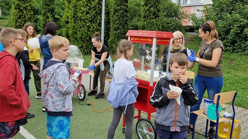 Spore emocje wywołała loteria fantowa, zorganizowana przez Samorząd Uczniowski. Do malowania twarzy i finezyjnych  warkoczyków ustawiały się długie kolejki. Duże zainteresowanie było kolorowymi balonami do modelowania oraz foto ścianką. Niezwykłą atrakcją dla dzieci był dmuchany statek. Powodzeniem cieszyło się stoisko z kiełbaskami z grilla, gdzie można było posmakować pysznych kiełbasek przygotowanych przez rodziców. Nie zabrakło również stoiska z watą cukrową i popcornem. Wielką frajdę sprawiły konkurencje sportowe;  challengem dla dzieci było wzięcie udziału w różnych rozgrywkach, a wynikiem zmagań – główna loteriada.