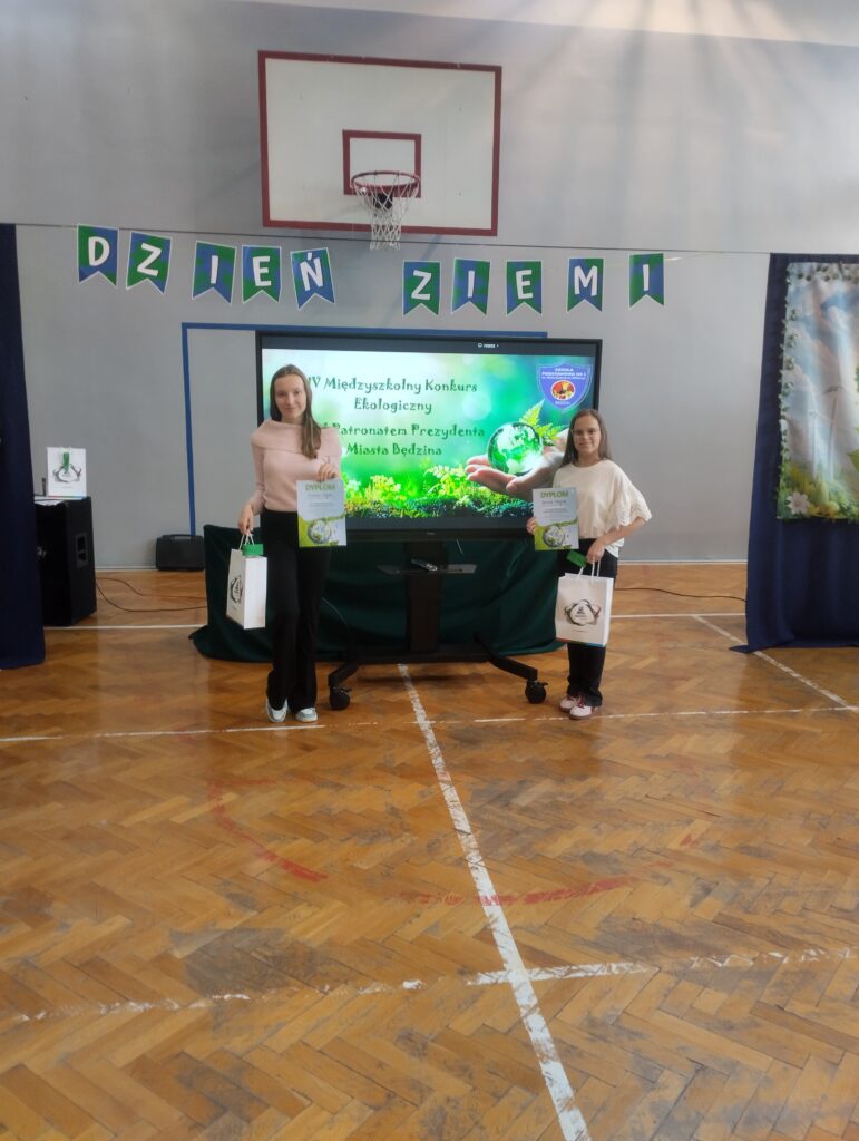 W Dniu 24.04.2026r dwie uczennice: Dominika Bindas oraz Karolina Pieczyrak wzięły udział w IV Edycji Konkursu Ekologicznego pod patronatem Prezydenta Miasta Będzina i zajęły w nim 3 miejsce.