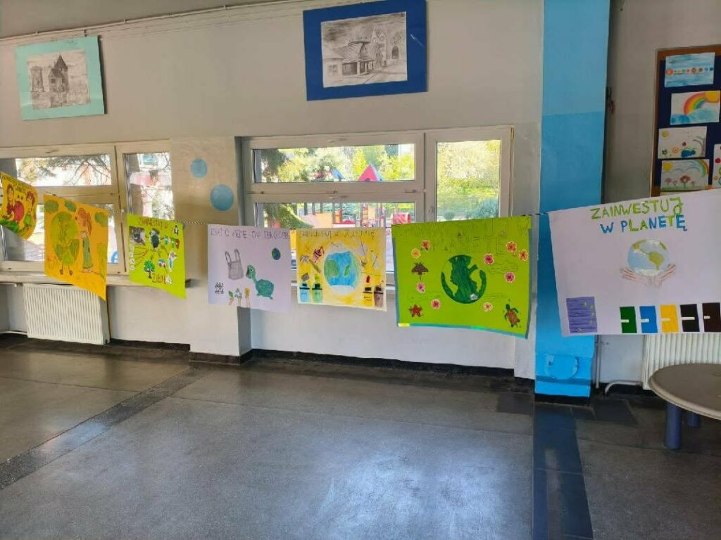 W związku z obchodami Dnia Ziemi w naszej szkole zrealizowano działania edukacyjne mające na celu kształtowanie postaw proekologicznych oraz zwiększanie świadomości uczniów w zakresie ochrony środowiska naturalnego. W ramach przedsięwzięcia uczniowie klas 4 – 8 przygotowali prace plastyczne, w których przedstawili własne refleksje i pomysły dotyczące troski o Ziemię oraz odpowiedzialnego korzystania z jej zasobów. Wykonane prace wyróżniały się dużą pomysłowością. Zwieńczeniem działań była wystawa prac uczniowskich, zorganizowana na terenie szkoły. Ekspozycja stanowiła ważny element edukacyjny oraz okazję do wymiany doświadczeń i inspiracji wśród uczniów.
