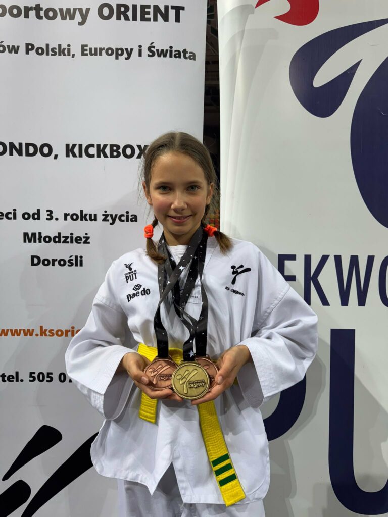 W sobotę 13 grudnia 2025 r. uczennica klasy 4c – Viktoria Szymura wzięła udział w XVII Gwiazdkowym Pucharze Orientu w Taekwon-do, odnosząc znakomity sukces i zdobywając trzy medale: