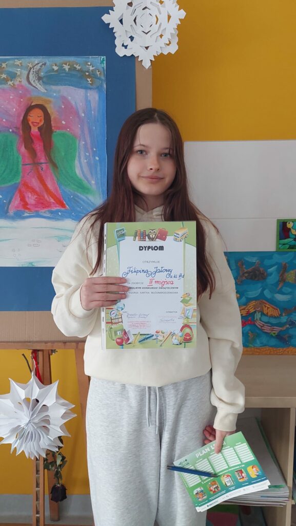 W dn. 26.01.26r. nastąpiło rozstrzygnięcie szkolnego konkursu bożonarodzeniowego. W tym roku szkolnym odbywał się on w ramach dwóch kategorii: plastycznej i literackiej. Oto laureaci.