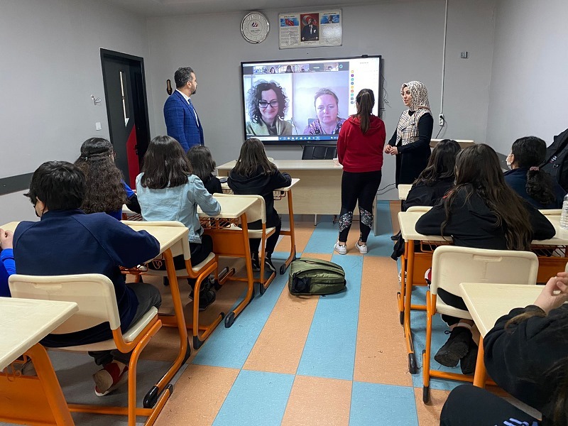 W ramach projektu etwinning uczniowie naszej szkoły wzięli udział w webinarium z placówką oświatową z Turcji. Spotkanie wywarło duże wrażenie na młodzieży. Dzięki temu przedsięwzięciu mieliśmy możliwość wymiany językowej i kulturowe.