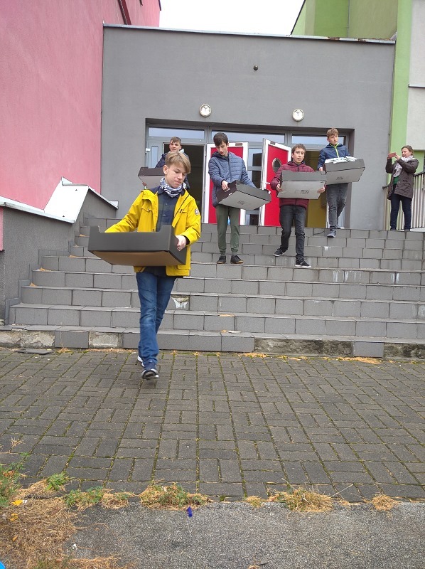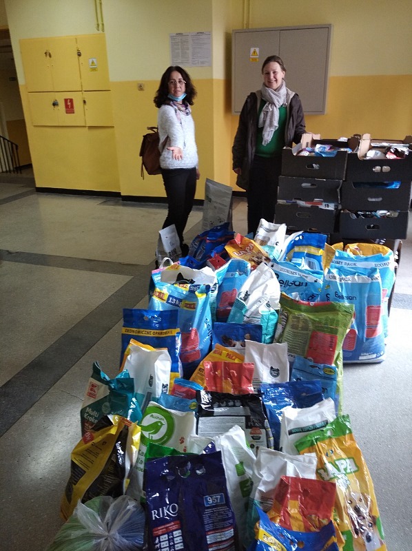 Społeczność naszej szkoły w dniach od 11.10.2021 do 29.10.2021 wzięła udział w IV edycji „Zbiórki dla Burka”. Zebraną żywność w dniu 09.11.2021 przekazaliśmy do Miejskiego Schroniska dla Bezdomnych Zwierząt w Katowicach, przy ulicy Milowickiej 1 b. Zgromadziliśmy sporą ilość suchego pokarmu, bo aż 295 kg karmy dla psów i 90 kg karmy dla kotów oraz puszki dla czworonogów, o łącznej wadze 95 kg. Jednocześnie nasza szkoła włączyła się do akcji organizowanej pod patronatem Prezydenta Miasta Będzina Pana Łukasza Komoniewskiego przy Urzędzie Miejskim „Pełna miska dla schroniska”, zapewniając zwierzętom ciepłe legowiska na okres zimy oraz przez Pana Rafała Adamczyka do II edycji zbiórki żywności „Karma dla naszych milusińskich”.